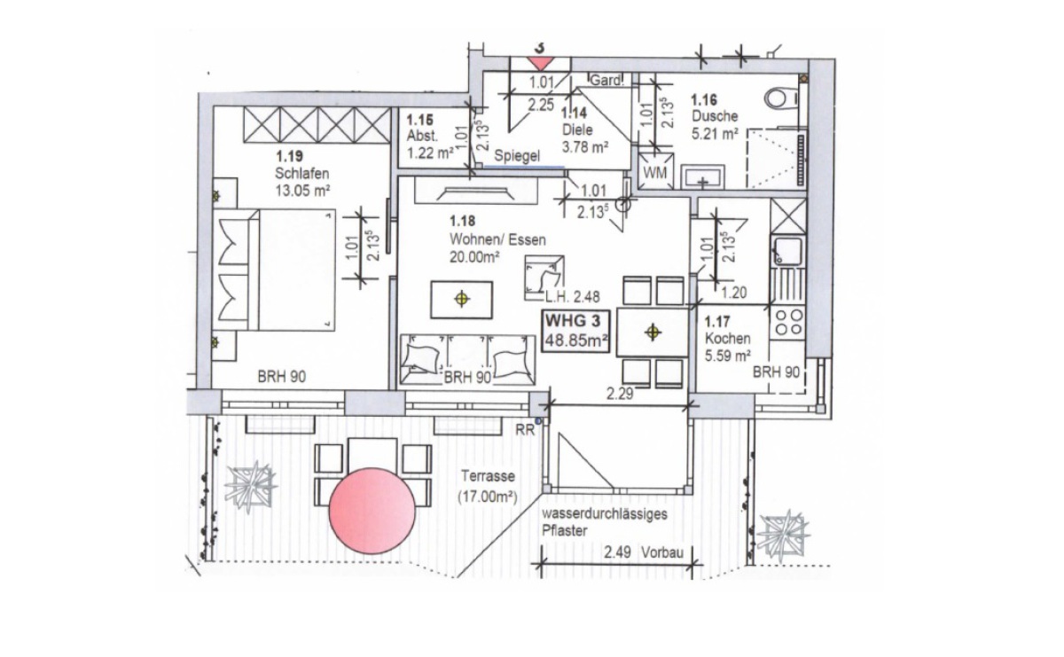 2 Zimmer 48,85 qm Terrasse 17 qm Senioren gerecht KFW 70 Energiesparhaus Einbauküche Bad mit Dusche ebenerdig Fußbodenheizung