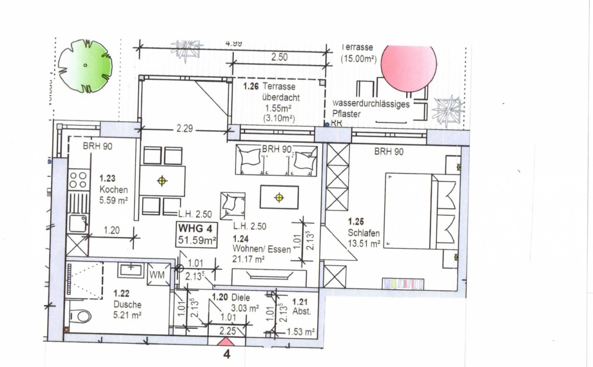 2 Zimmer 51,59qm Terrasse 15 qm Senioren gerecht KFW 70 Energiesparhaus Einbauküche Bad mit Dusche ebenerdig Fußbodenheizung