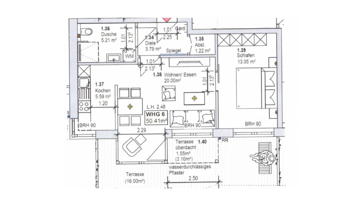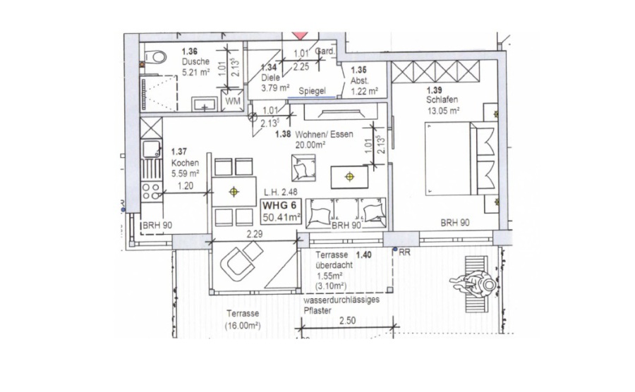2 Zimmer 50,41 qm Terrasse 16 qm Senioren gerecht KFW 70 Energiesparhaus Einbauküche Bad mit Dusche ebenerdig Fußbodenheizung