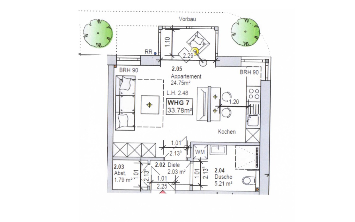 1 Zimmer 33,78 qm Senioren gerecht KFW 70 Energiesparhaus Einbauküche Bad mit Dusche ebenerdig Fußbodenheizung