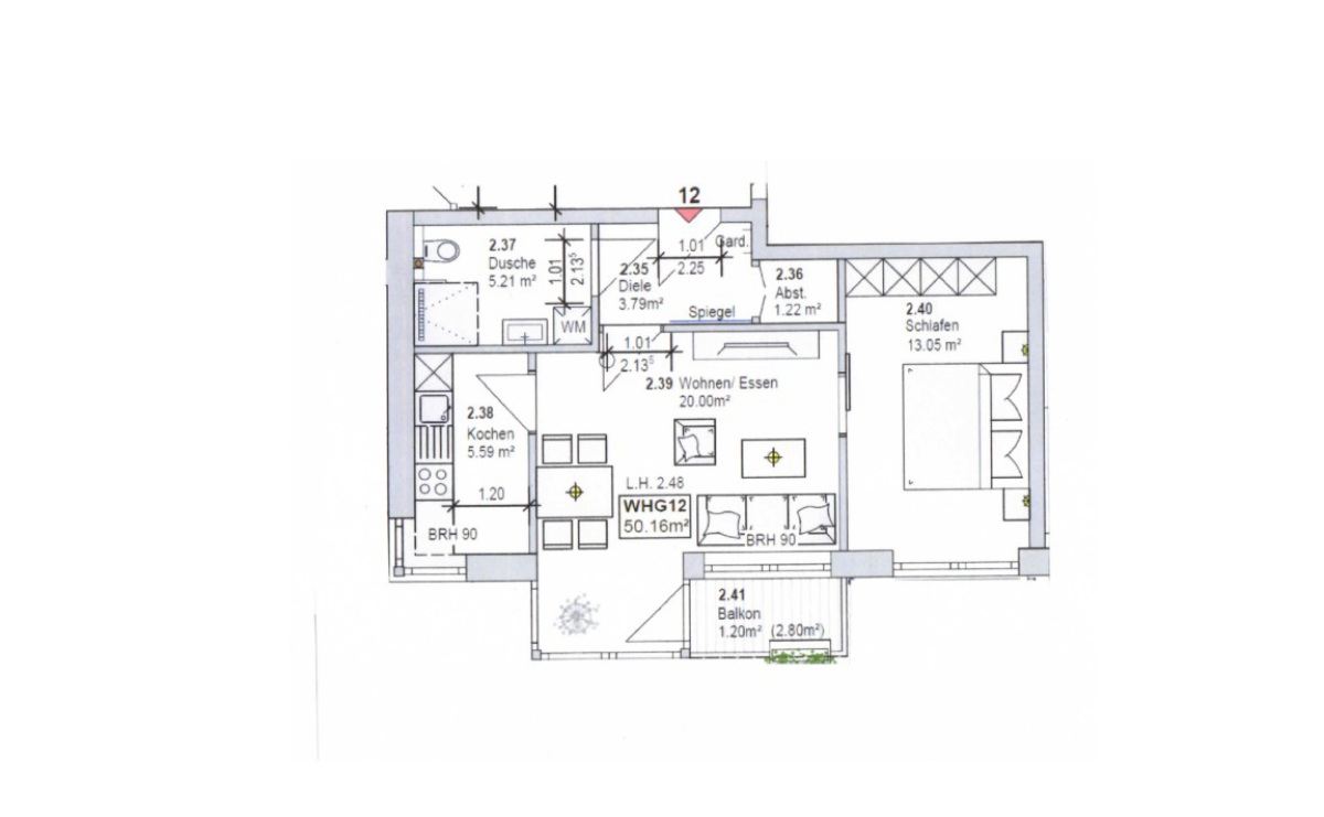 2 Zimmer 50,16 qm Balkon 2,80 qm Senioren gerecht KFW 70 Energiesparhaus Einbauküche Bad mit Dusche ebenerdig Fußbodenheizung