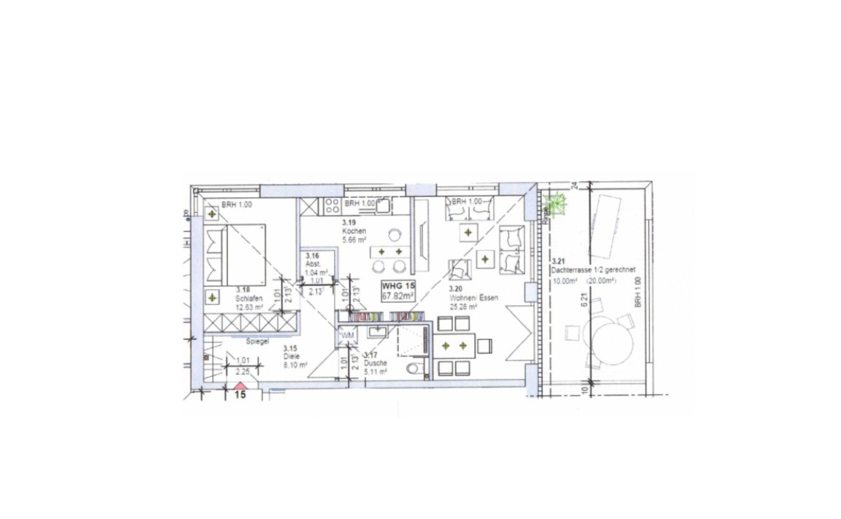2 Zimmer 67,82 qm Dachterrasse 20,00 qm Senioren gerecht KFW 70 Energiesparhaus Einbauküche Bad mit Dusche ebenerdig Fußbodenheizung