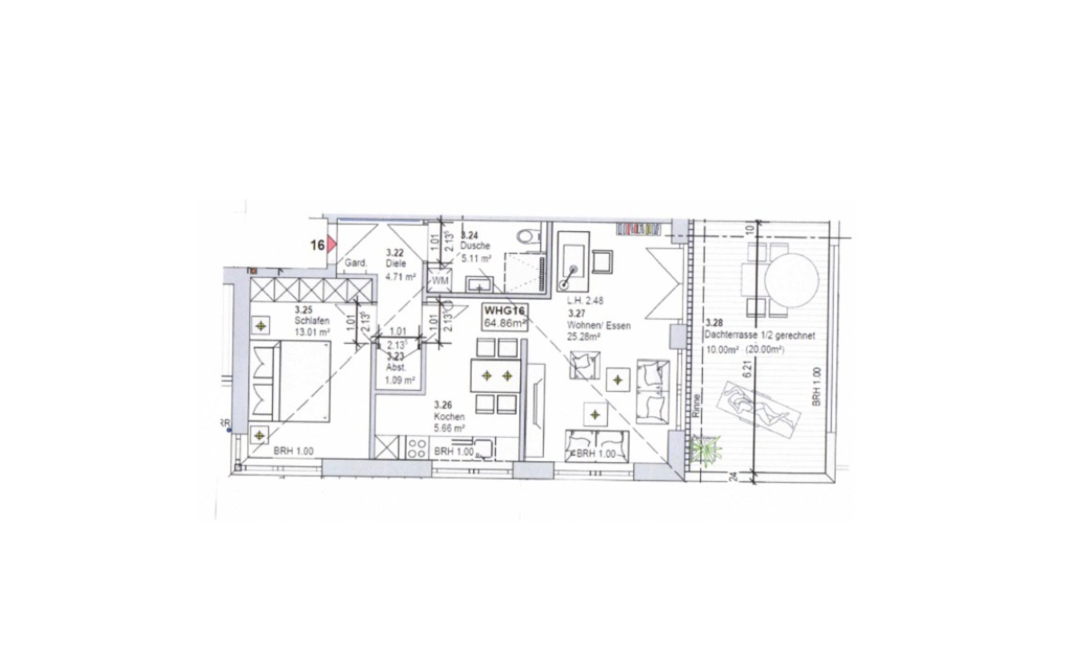 2 Zimmer 64,86 qm Dachterrasse 20,00 qm Senioren gerecht KFW 70 Energiesparhaus Einbauküche Bad mit Dusche ebenerdig Fußbodenheizung