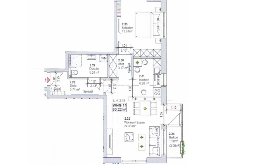 2 Zimmer 60,22 qm Balkon 3 qm Senioren gerecht KFW 70 Energiesparhaus Einbauküche Bad mit Dusche ebenerdig Fußbodenheizung